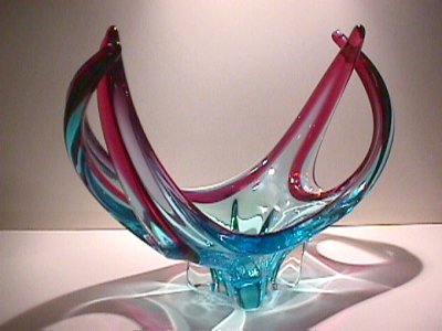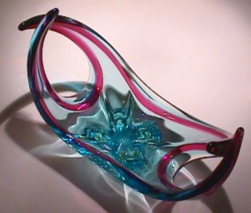| Welcome to my newest interest! So far, I have found this one piece.. a candy dish! I have become fascinated with art glass. I found a neat gallery up in Portsmouth New Hampsire called Not Just Mud. This is a very interesting place. One must be carefull though when in there, as it is packed with glass! I almost backed up into another piece.. Luckily, there was no damage to either their (almost my) merchandise, or my rapidly beating heart! ;-)